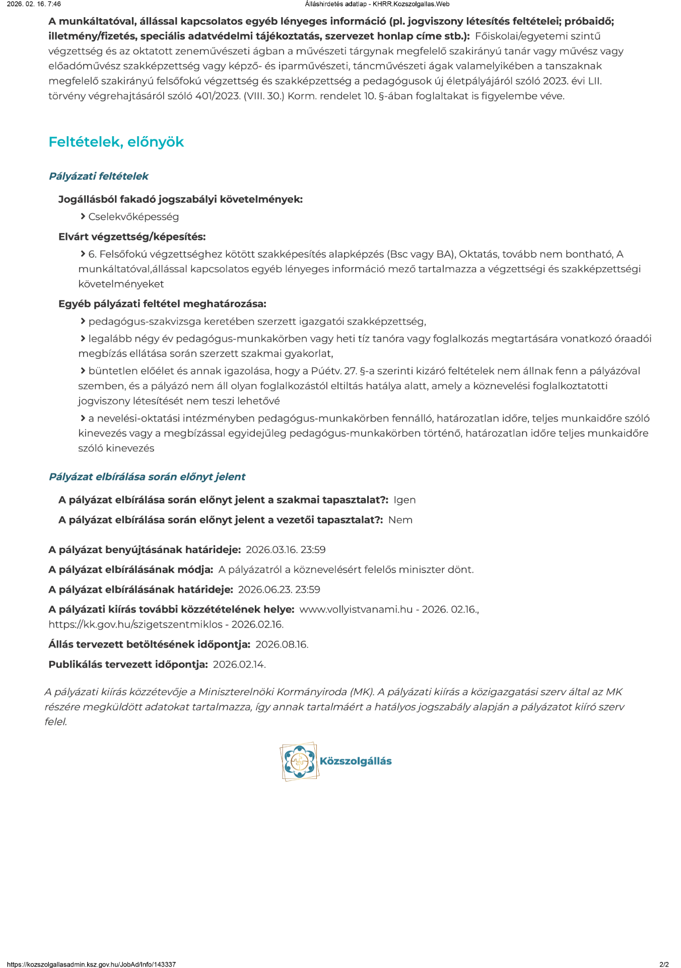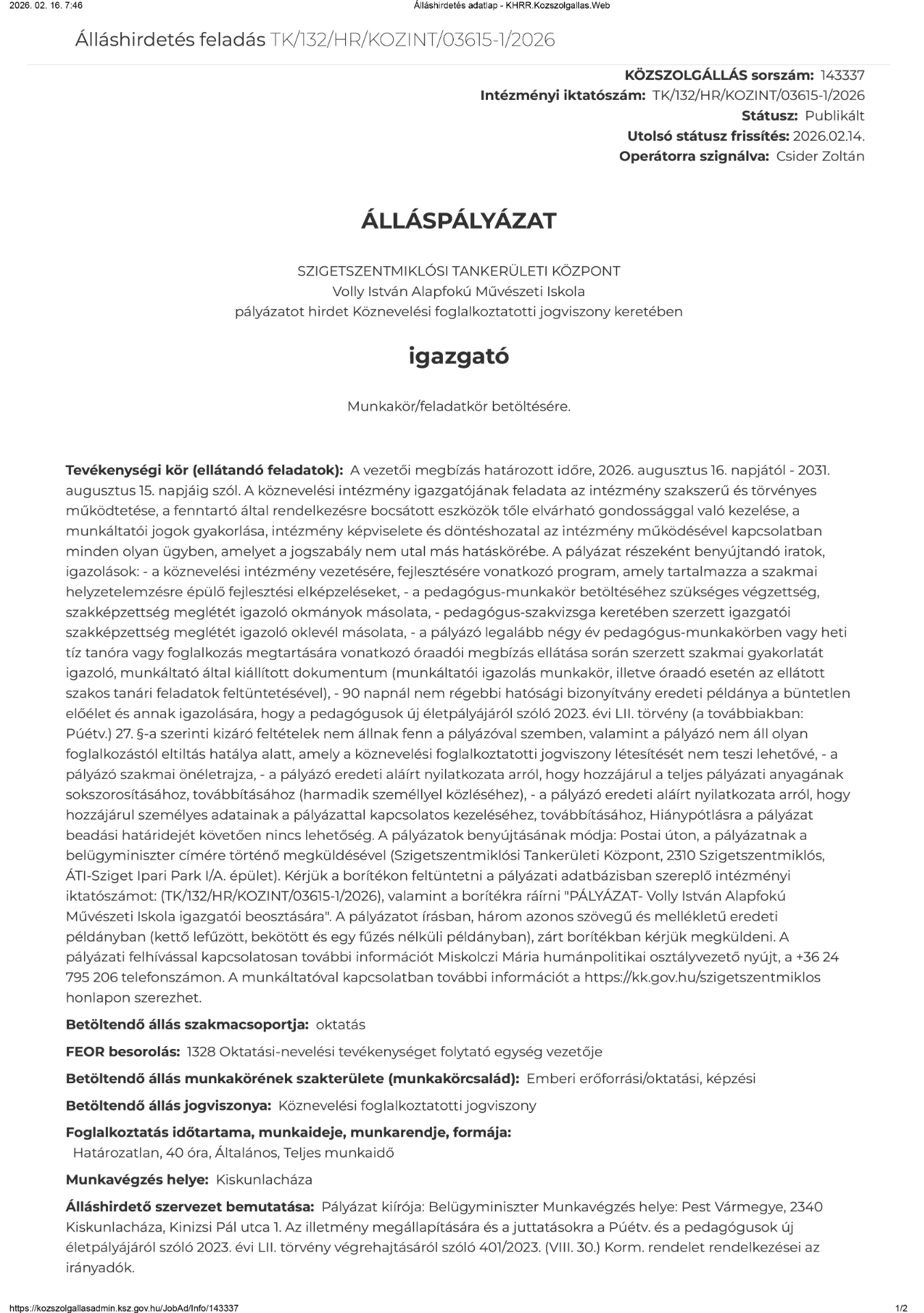 • Igazgatói álláspályázat